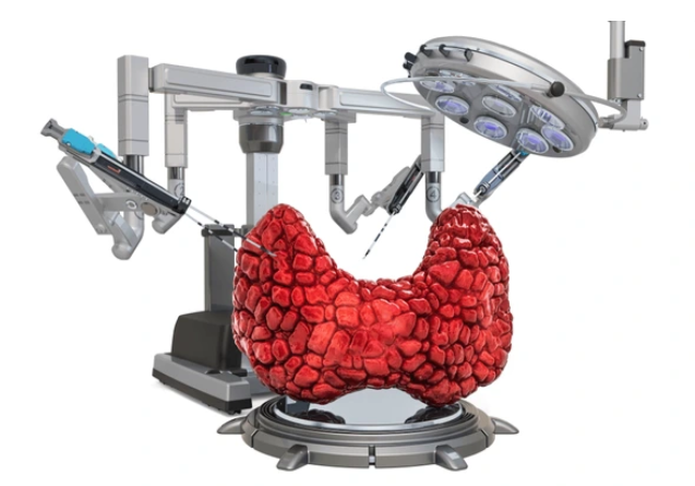 Robotic thyroid surgery is an advanced minimally invasive procedure used to remove part or all of the thyroid gland using robotic-assisted technology. This technique allows surgeons to perform highly precise operations through small incisions, often avoiding visible scars on the neck.